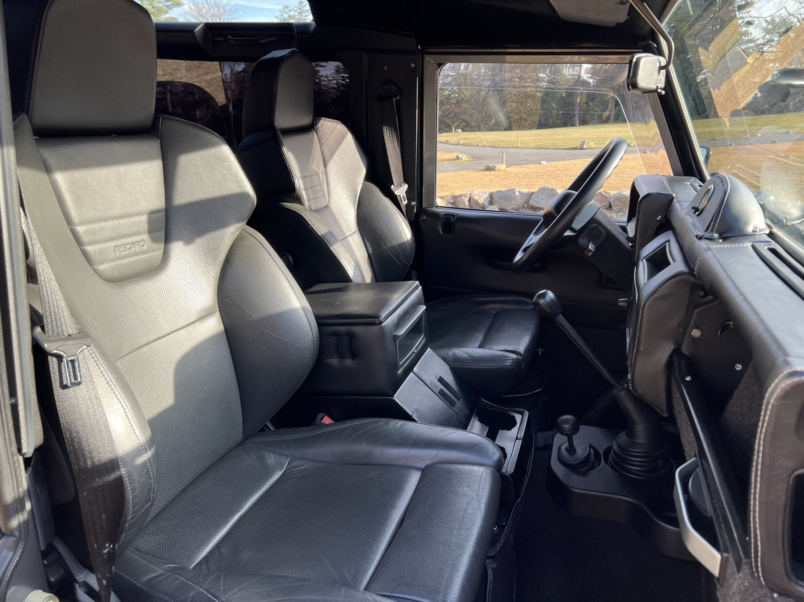 This is a European market Defender 90, left-hand drive, originally sold new in Italy and later refurbished, modified and imported into the U.S. by Oscar Toga. This Defender is powered by a strong 2.0 liter engine with a 5-speed manual transmission and 4-wheel drive, which is one of the most desirable combinations among enthusiasts and it features some desirable upgrades like an Imasaf exhaust system, a panoramic glass-roof hard top, leather upholstery, Recaro front seats, and plenty of insulation that should male it quieter and more comfortable than most 90’s. Plus this Defender is registered in the U.S., New Hampshire, so the hard work of importing a car from overseas has already been completed.